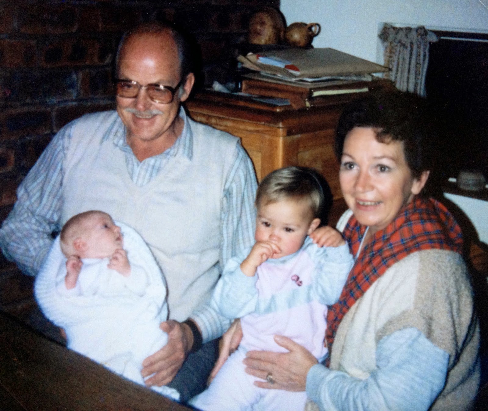 He looks anything but a grump in this lovely photo of my parents with the grandchildren in 1986.